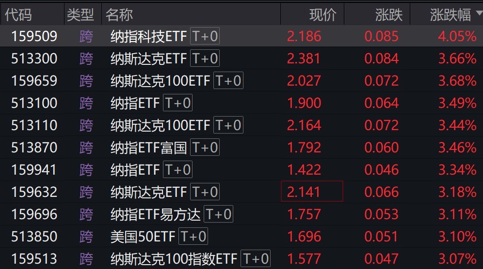 受消息影響,英偉達(dá)盤(pán)后漲超5%,納斯達(dá)克指數(shù)期貨漲超1.8%,場(chǎng)內(nèi)多只納指相關(guān)ETF漲超3%。