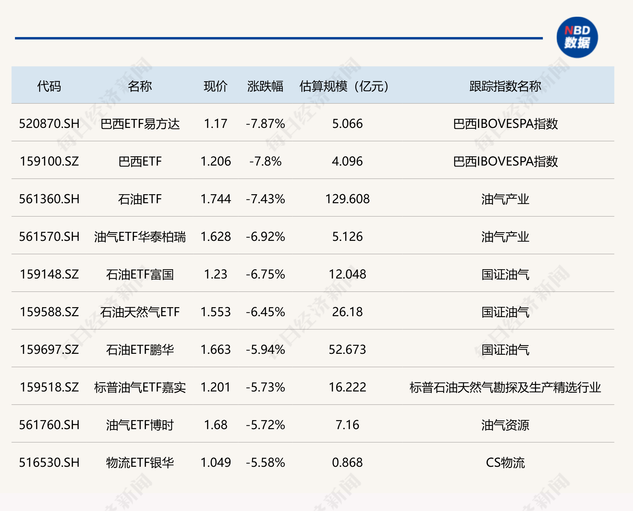 下跌方面,巴西、石油相關(guān)ETF跌超7%。