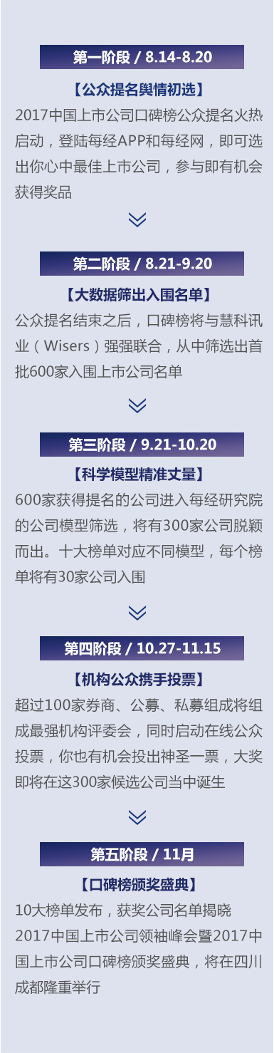 正本清源、守望價(jià)值,也一直是《每日經(jīng)濟(jì)新聞》連續(xù)七年舉辦中國(guó)上市公司口碑榜的初衷。2017年的盛會(huì)已經(jīng)正式開(kāi)啟,在價(jià)值時(shí)代的感召之下,今年的獎(jiǎng)項(xiàng)競(jìng)選必將更為激烈,就讓我們靜候佳音。