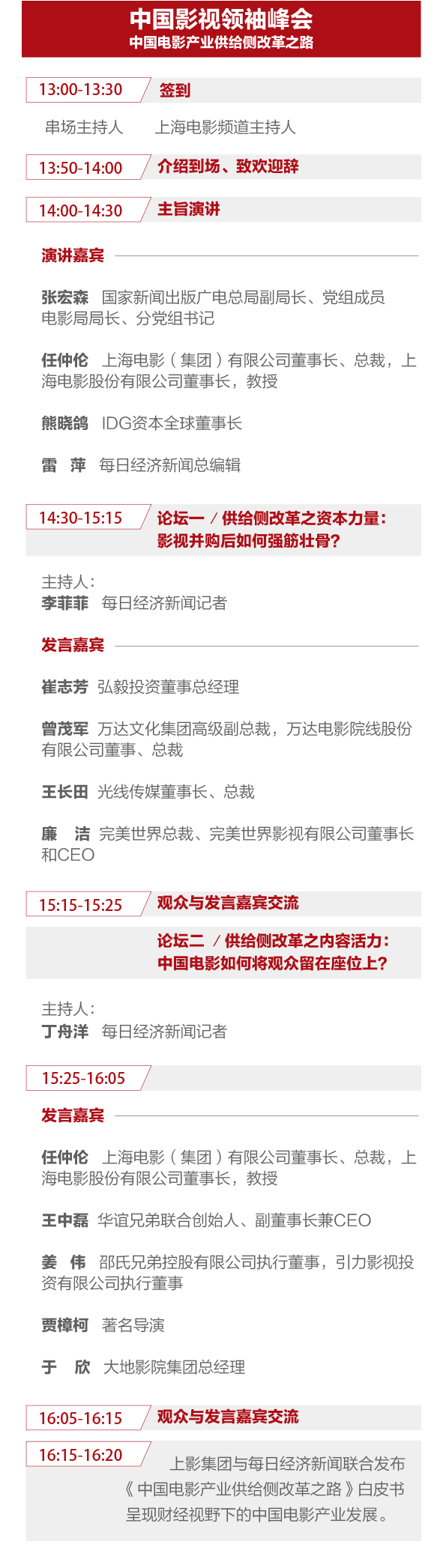 為了共同探討中國電影發(fā)展大計,減緩國內(nèi)優(yōu)質(zhì)電影供給不足和人民對電影文化消費需求持續(xù)增長的矛盾,張宏森、任仲倫、熊曉鴿、雷萍、王中磊、曾茂軍、王長田、廉潔、崔志芳、姜偉和賈樟柯等,方向掌舵者、龍頭企業(yè)和公司、行業(yè)精英……將濟濟一堂,傳遞政策導向、引領(lǐng)投資風向、把脈創(chuàng)作方向……