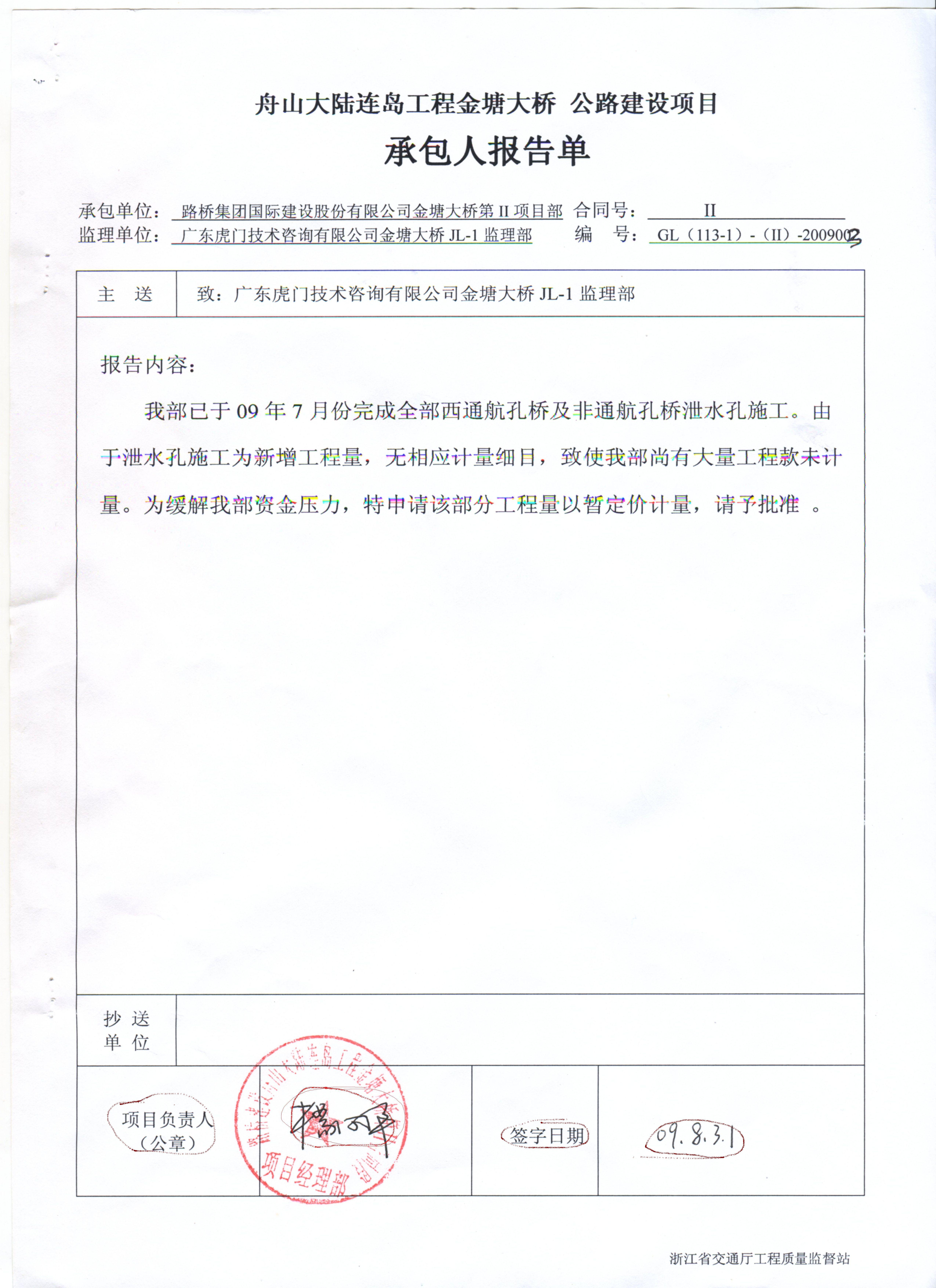 7月29日,舉報(bào)人楊之君(化名)在國(guó)內(nèi)某知名論壇上發(fā)布了浙江舟山跨海大橋存在非法轉(zhuǎn)包、偽造簽名等問題的舉報(bào),并附上大量的大量的原始資料,該貼立即引起廣泛關(guān)注,更新甚至超過達(dá)到十頁(yè),三天之后,舉報(bào)人接受了記者近4個(gè)小時(shí)的當(dāng)面采訪。【更多】