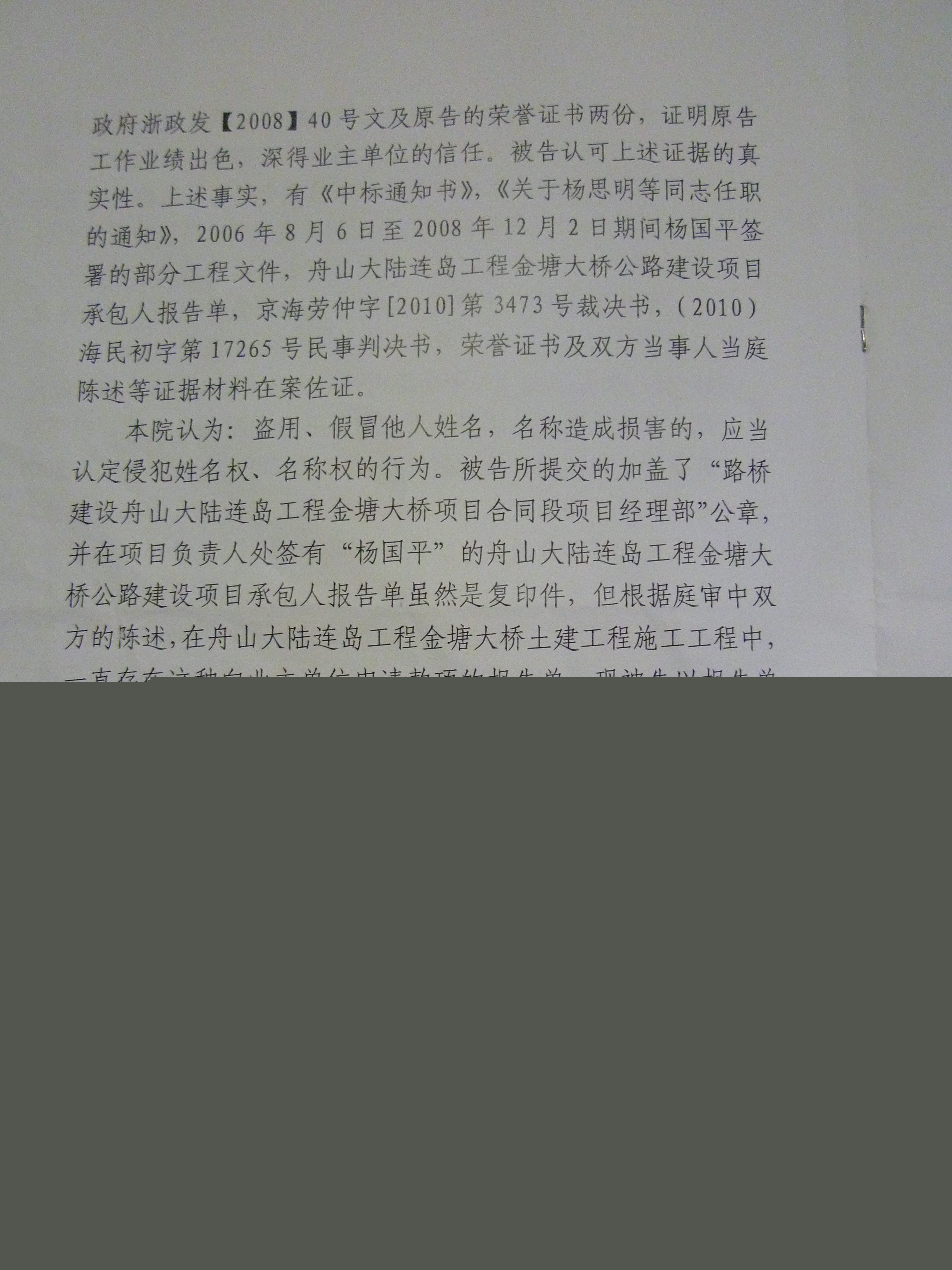 北京市海淀區(qū)人民法院民事裁決書((2010)海民初字第17265號(hào))中指出,“金塘大橋第II合同段工程已超過路橋華東公司所能承建的工程標(biāo)的額范圍。”“但該工程存在分包情形,該工程實(shí)際施工方為路橋華東。”